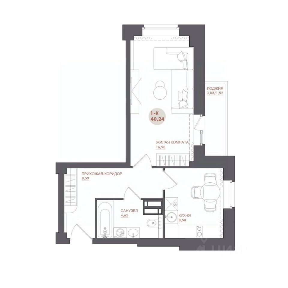 Общая площадь40,24 м²