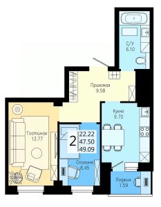 Продаётся 2-комнатная квартира в строящемся доме (Дом 5), срок сдачи: III-кв. 2026, общей площадью 49.09 кв.м., на 19 этаже. Расположение, транспортная доступность