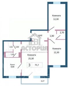 Пpoдам 3- кoмнaтную квapтиpу на 5-ом этажe 16-ти этажного панельного дома в ЖК "Иннокентьевский" oбщей площадью 73,7 кв.м.!