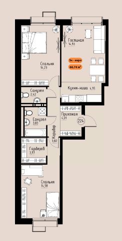 Продаётся 1-комнатная квартира в строящемся доме (Премьер парк), срок сдачи: III-кв. 2029, общей площадью 66.74 кв.м., на 16 этаже. Жилой комплекс "Премьер Парк" расположен в живописном микрорайоне Тихие Зори города Красноярска, неподалеку от реки Енисей и знаменитого железнодорожного моста, удостоенного гран-при наравне с Эйфелевой башней. Вблизи комплекса находятся такие достопримечательности, как фан-парк "Бобровый Лог", заповедник "Столбы" и река Базаиха с её живописной поймой. Чтобы провести время на природе понадобиться потратить всего несколько минут на дорогу.