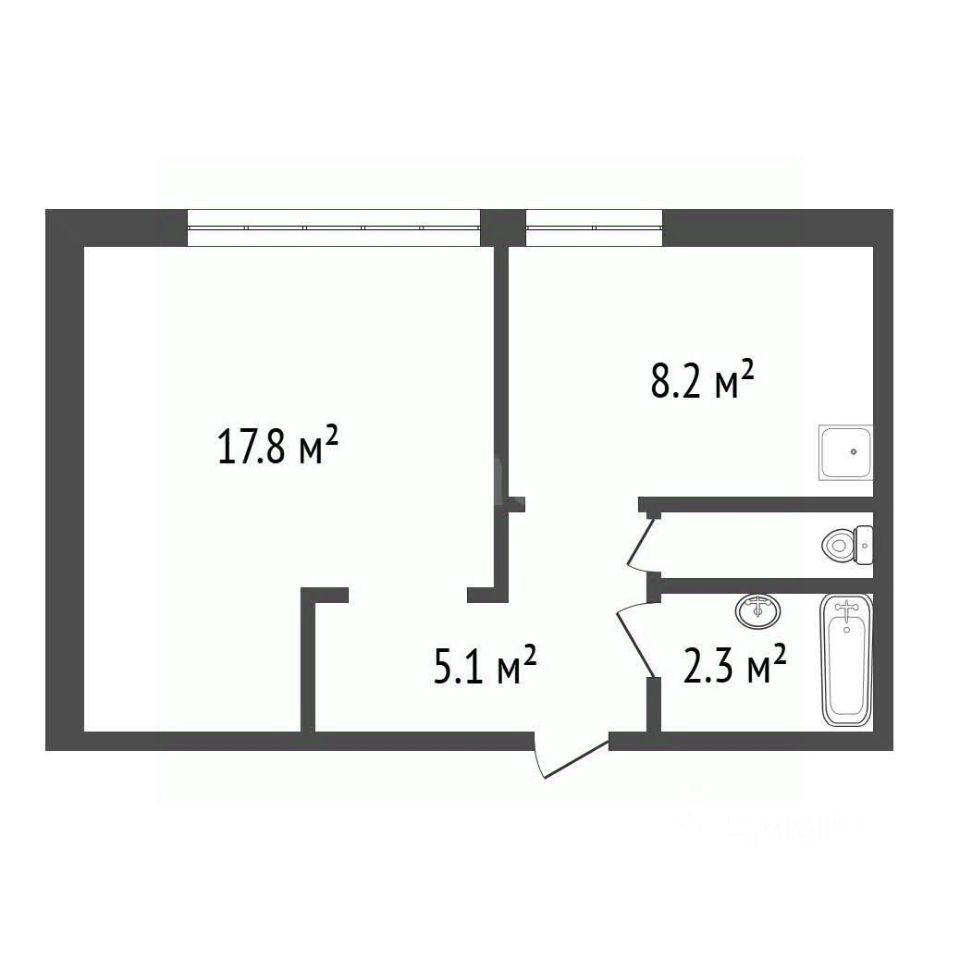 Общая площадь составляет 34.6 кв.