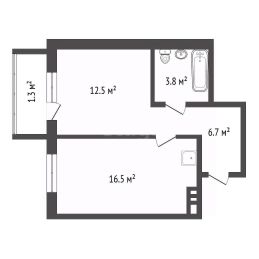 Просторная кухня-гостинная целый 16,5м2 позволяет организовать функциональную кухню и зону отдыха!