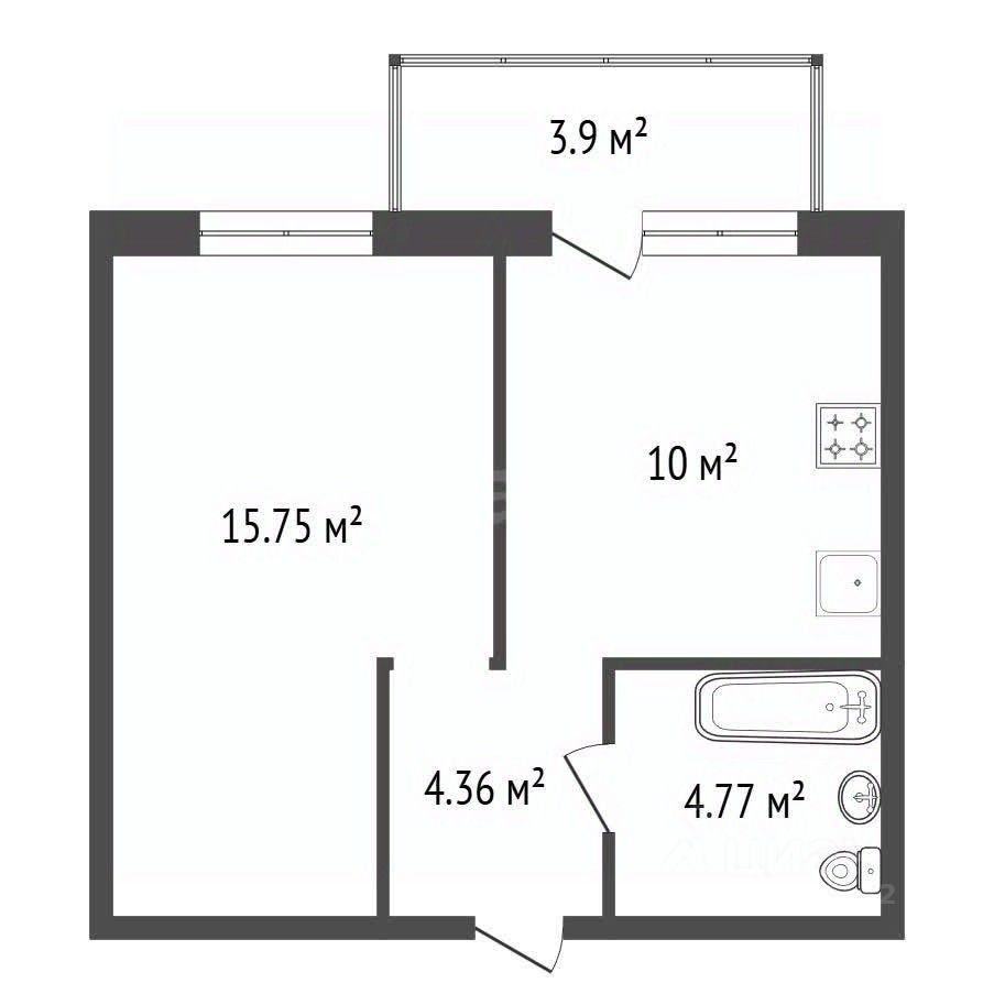 • Комната: Просторная и светлая, с возможностью зонирования пространства. Здесь можно разместить как спальное место, так и уголок для отдыха.