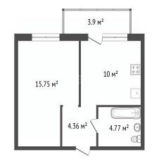 Квартира общей площадью 36.1 м² находится на 10 этаже 15-этажного монолитного дома, что обеспечивает прекрасный вид из окна и хорошую звукоизоляцию.