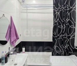 • Совмещенный санузел с современным кафелем в черно-белых тонах и ванной после капитального обновления (мраморная эмаль).