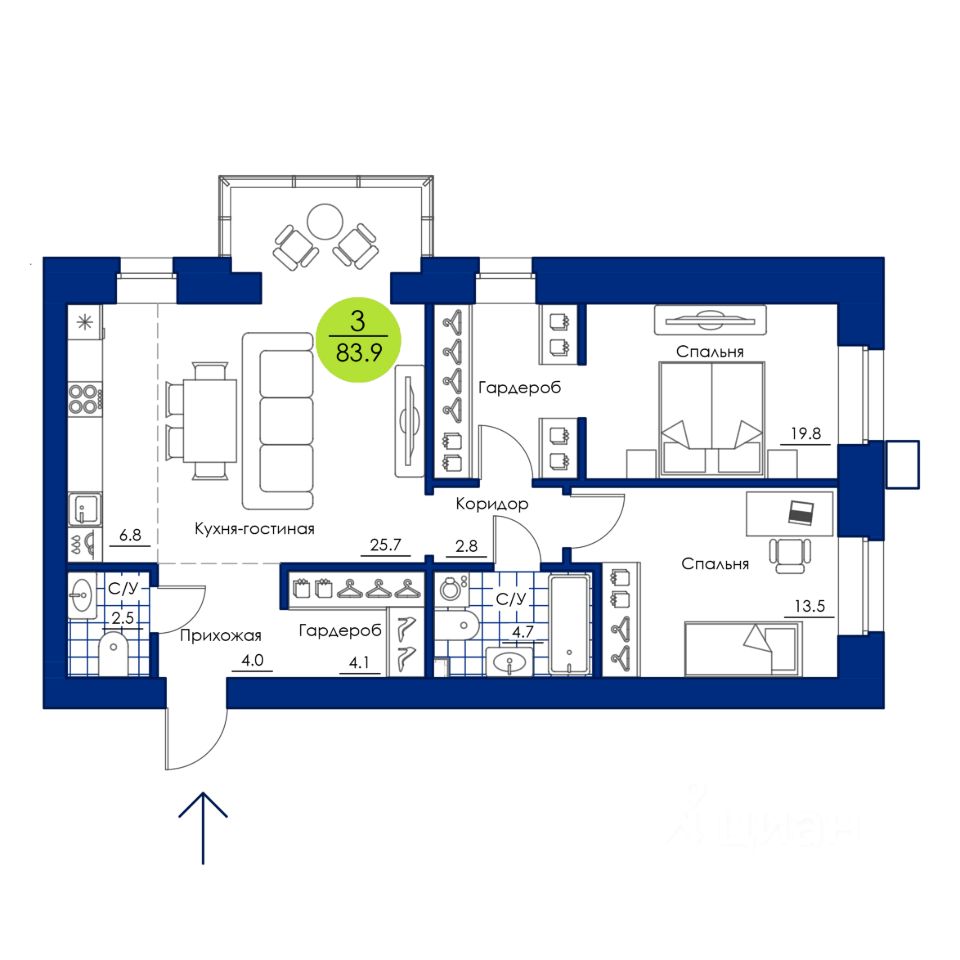 83,9 м²