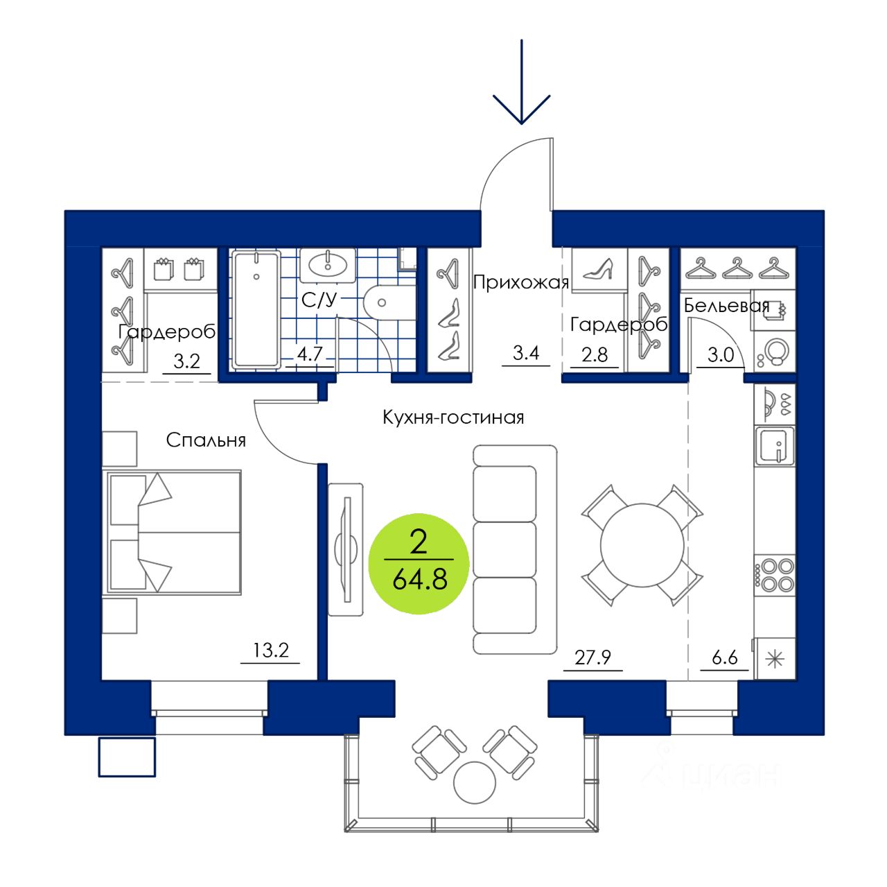 64,8 м²