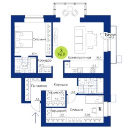 96,9 м²