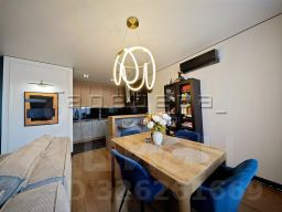 Предлагаем 3х комнатную квартиру с современным дизайнерским ремонтом в ЖК Притяжение. Комплекс удобен своей закрытой территорией с большой зеленой зоной для прогулок и отдыха, спортивными площадками для подростков и огромными детскими городками для младших ребятишек. Подземный паркинг с выходом из лифта расположен под каждым домом комплекса. А нежилые помещения на первом и втором этажах предлагают большое разнообразие товаров, разнообразных услуг, медицинского обслуживания и гастрономического удовольствия для жителей дома. Планировка квартиры изображает форму Бабочки - Две уютные спальни с лоджиями по бокам от центральной кухни-гостиной, где у каждого свое личное пространство, но при этом вся семья всегда вместе за обедом, чашкой чая или просто за душевными беседами! Чтобы создать атмосферу уюта и тепла, любимую кухню сделали очень функциональной и современной, фирмы Egger, здесь не только фасады из шпона, но и объемная барная стойка выполнена из дерева. Кухонный гарнитур оснащен всей встроенной техникой для удобства хозяйки. В такой просторной комнате — вместили большую мягкую зона перед телевизором, которые стал акцентом на стене из шпона. Дизайнер предусмотрел беспороговый пол по всей квартире, который не только расширяет пространство но и удобен для маленьких ребятишек. В проекте предусмотрены две просторные гардеробные - где все как на ладони. Отмечу, что изначально квартира сдавалась в черновой отделке, и пришлось очень много вложиться чтобы все поверхности выровнять по маякам. Отдельно хочется отметить лоджии, где также выравнивали стены, окрашивали, и положили на пол кафель. Поэтому в отделке квартиры использовали не только лучшие материалы, но и коллекционный кафель, обои, долго подбирали освещение и писали картины на заказ. Не упустите шанс ваша dream-квартира ждет вас! Звоните прямо сейчас и сделайте шаг к счастливой жизни в ЖК "Притяжение"!