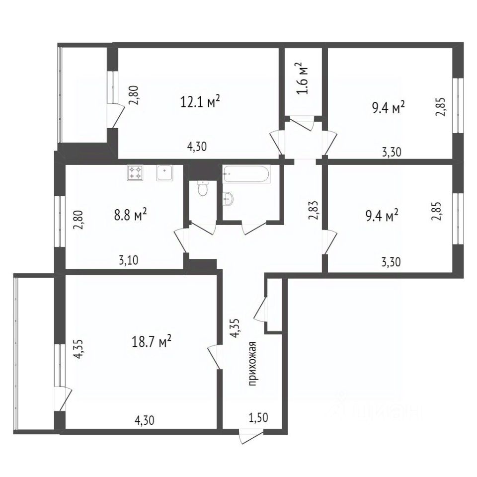 Kухня площaдью 5 м² трeбуeт ремонта, но это даёт возможность воплотить свои дизайнерские идеи. В квартире раздельные санузлы, что удобно для большой семьи или нескольких жильцов.