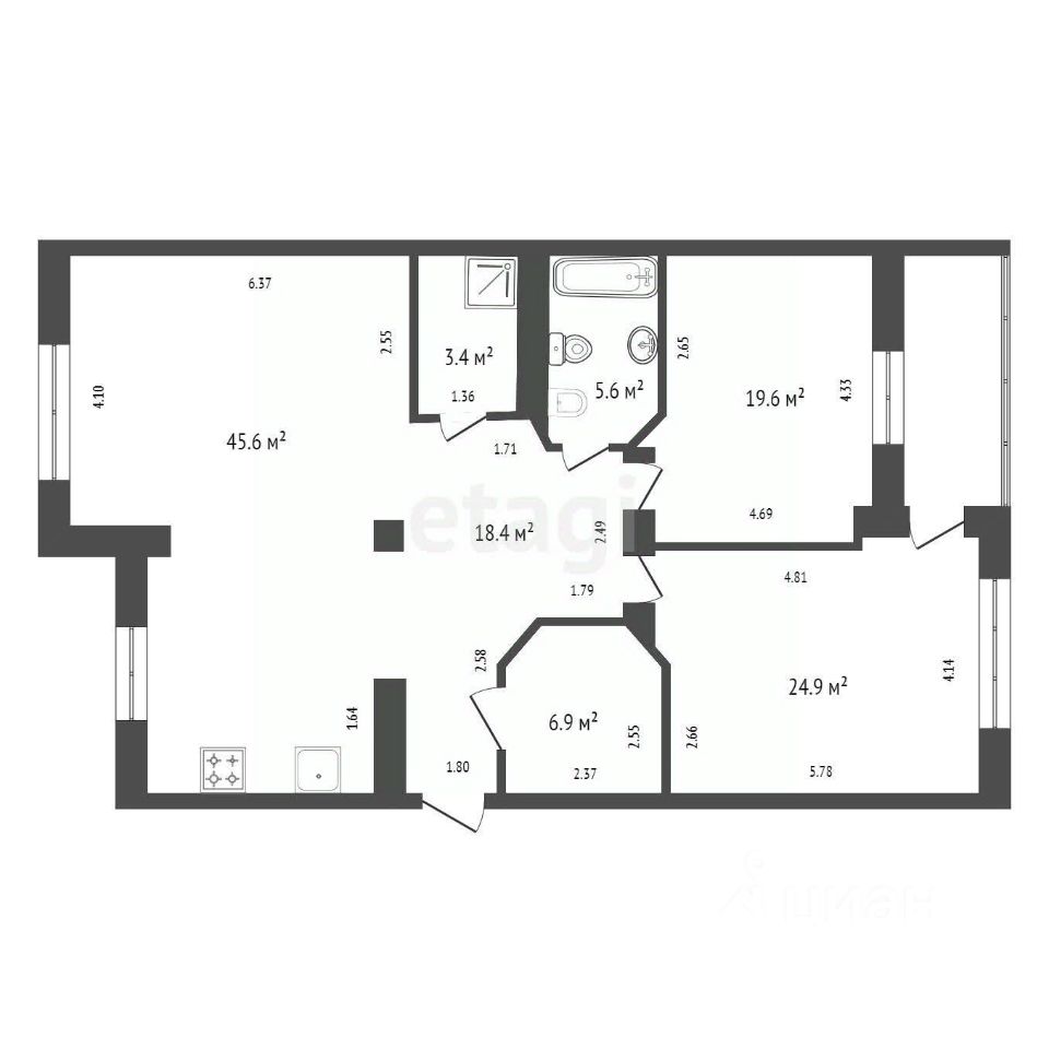 Общая площадь 125,5 кв.м + лоджия