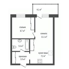 Продам 2-комнатная, площадью 35.7 м² в ЖК Калина-Долина.