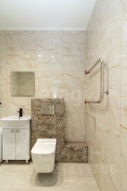 Выполнен качественный современный ремонт с тщательным вниманием к мелочам: натяжные потолки, практичный прочный ламинат, санузел полностью облицован керамической плиткой. В ванной комнате установлена стильная инсталляция, акриловая ванна и многофункциональная душевая система.