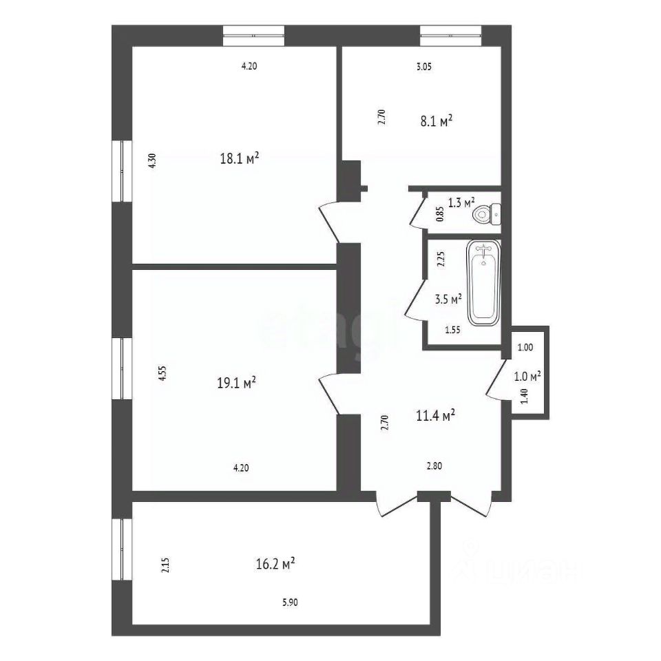 Продаётся 3-комнатная квартира 78,7 м² на 1 этаже