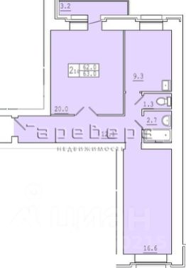 площадь: 62,5 м2;