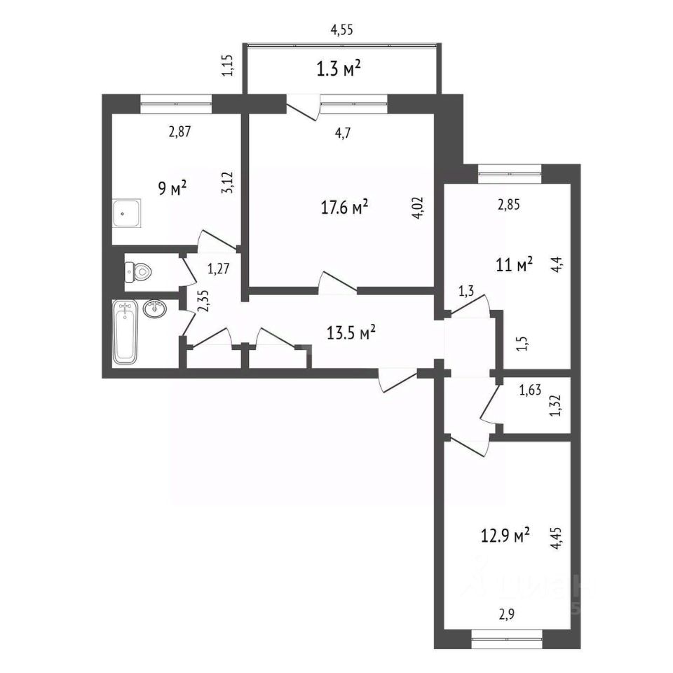 В продаже трёхкомнатная квартира в экологически чистом районе г. Красноярска в доме 1996 года постройки.