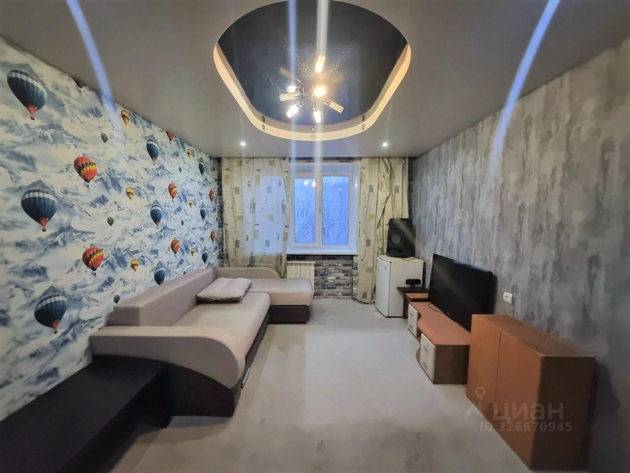 Состояние комнаты : Свежий косметический ремонт, осталось постелить линолеум (полы выравнены, залиты). Стены выравнены, заменены радиаторы, окно ПВХ, натяжной потолок.