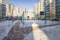 Санузел оборудован подвесной сантехникой Groe, современной ванной и новой кафельной плиткой. Кухонный гарнитур, подъемная кровать с системой хранения, диван, стол и техника остаются в собственности покупателя. Дом обеспечен круглосуточной охраной и видеонаблюдением на прилегающей территории. Внутренний двор закрыт для посторонних, предусмотрена парковка с внешней стороны здания. Подъезды сквозные, с входами с обеих сторон, что обеспечивает удобный доступ. Район отличается развитой инфраструктурой: в шаговой доступности магазины, парк для семейного отдыха.