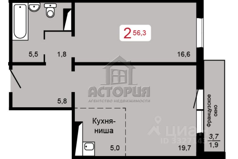 56,3 м²