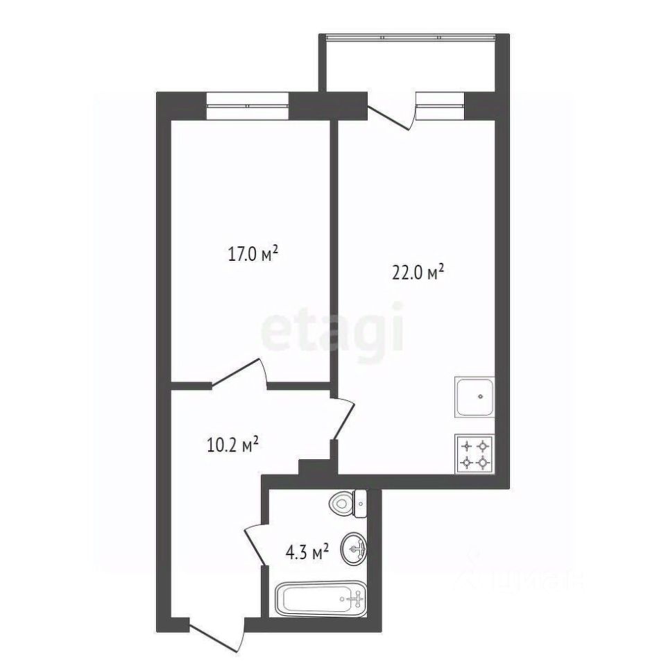 Кухня-гостиная 22 кв.м, спальня 17 кв.м.