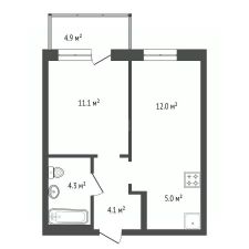 - Планировка: две комнаты, одна из них объединённая кухня-гостиная, совмещенный санузел, продуманное распределение функциональных зон.
