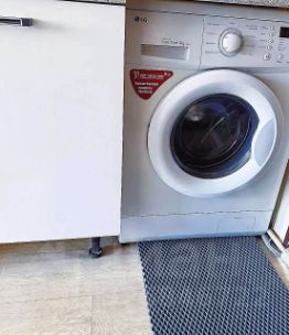 Остаётся мебель и техника: диван, шкаф, кухонный гарнитур, холодильник, стиральная машина-автомат — дополнительная экономия для покупателя.