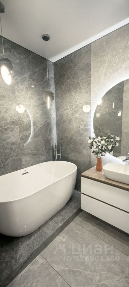 Ремонт выполнен в светлых тонах, потолки 2.75 м, использованы качественные материалы: spc ламинат, двери скрытого монтажа, инстаграмные санузлы с отдельно стоящей ванной, качественной сантехникой и отделкой из керамогранита.