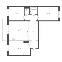 Планировка: Квартира состоит из трёх изолированных комнат, кухни площадью 12 м², санузла и просторного коридора.