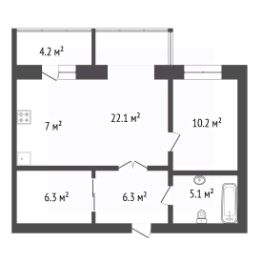 Двухкомнатная квартира площадью 59,1 м² расположена на 17 этаже кирпичного дома премиум-класса в ЖК "Scandis" от застройщика "Арбан".