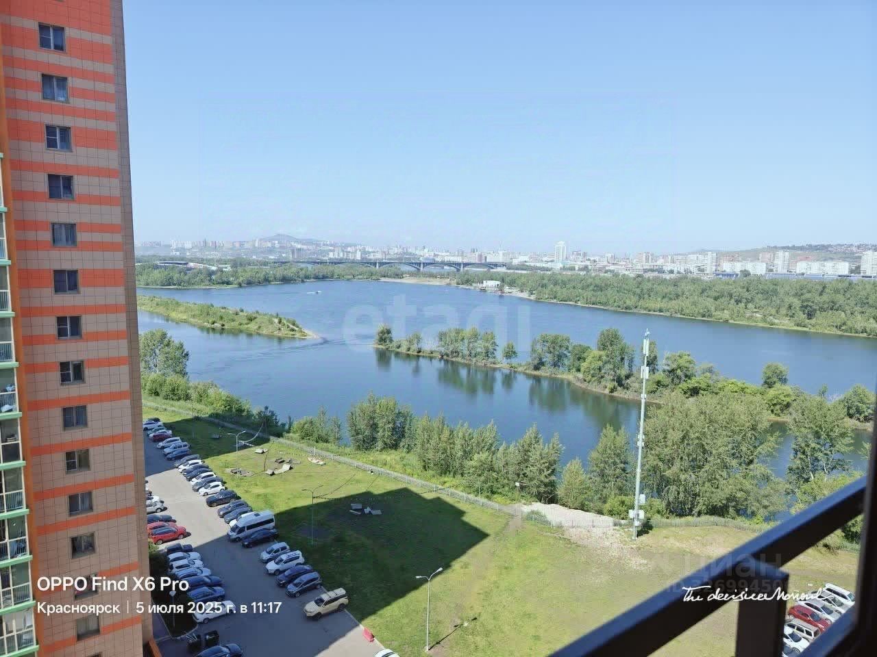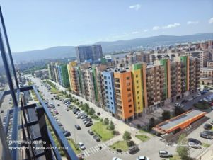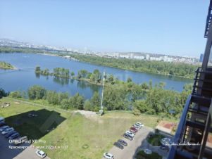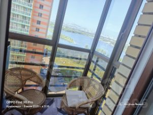 С балкона прекрасный вид на коммунальный мост и Енисей, а также на площадку, где летом проводятся ярмарки и концерты. В праздники фейерверк виден из окна балкона.