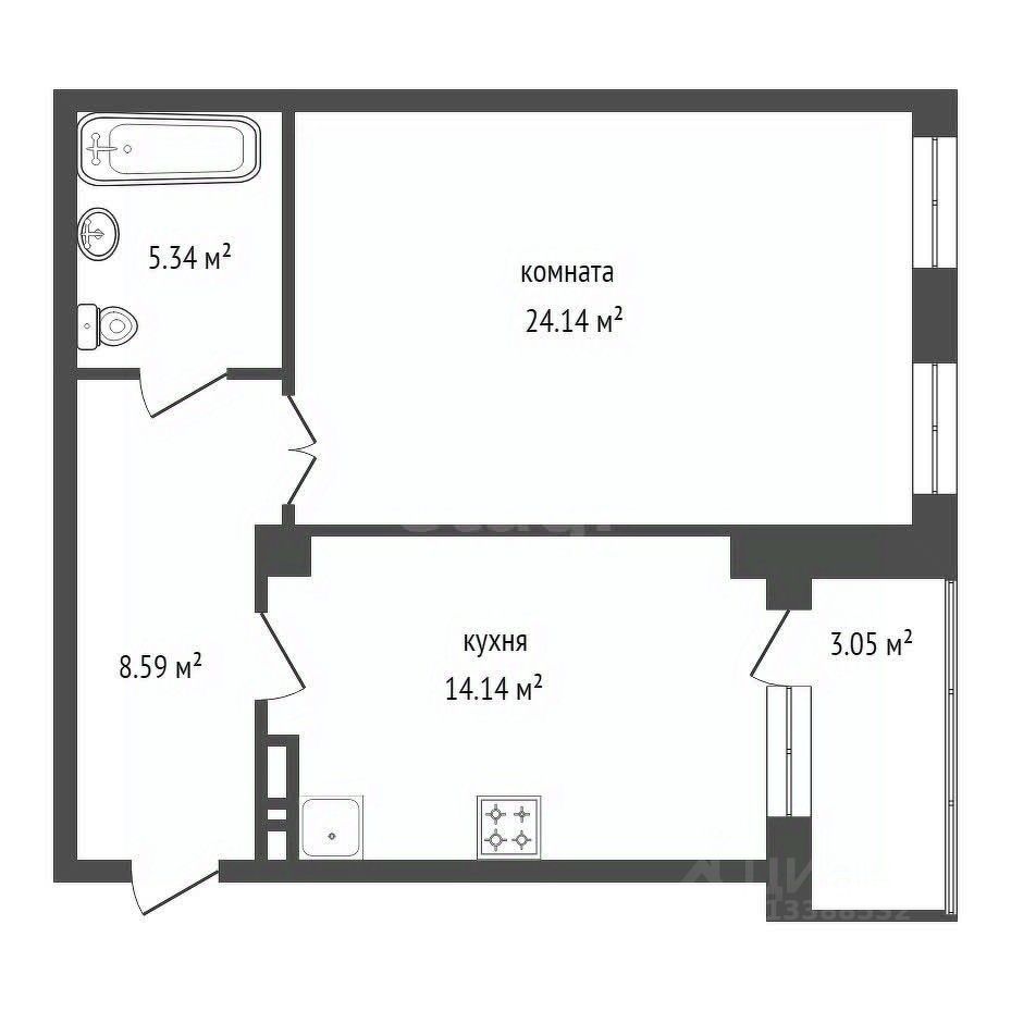 - Удобная планировка, позволяющая легко преобразовать жилье в евродвухкомнатную квартиру.