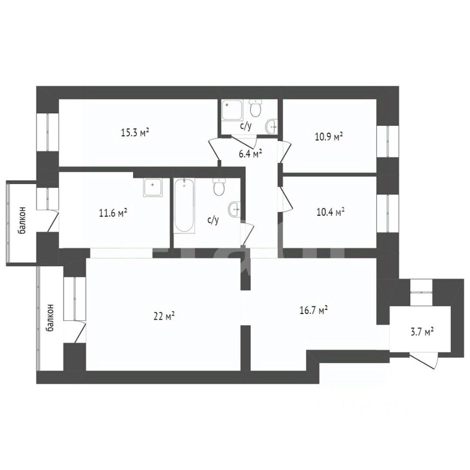 -2 совмещенных санузла