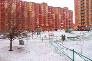 Придомовая территория благоустроена: здесь расположен ухоженный двор с детской площадкой, зелеными зонами и достаточным количеством парковочных мест.