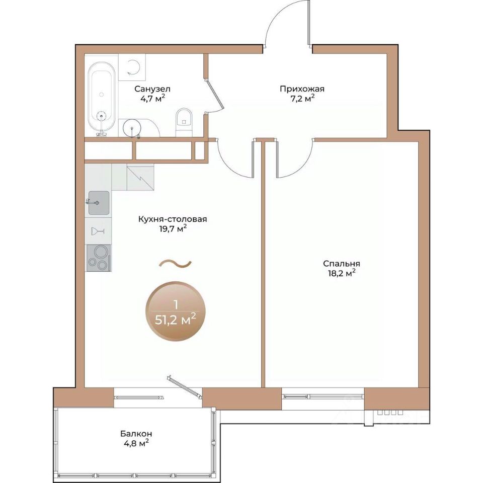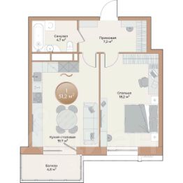 Общая площадь51,2 м²