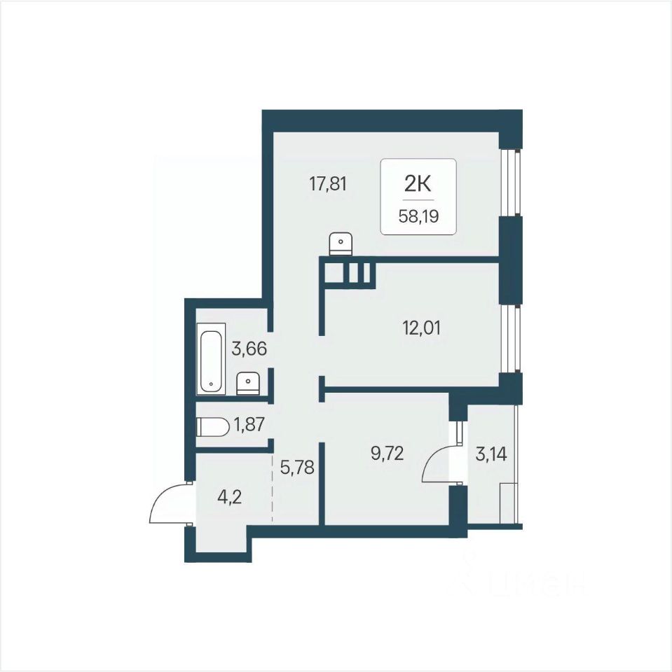 "В продаже 2-комнатная квартира, площадью 58.19, под номером 2 в новом Доме ЖК "Расцветай в Солнечном"." "Расцветай в Солнечном" — квартал комфорт-класса на Черемуховой улице, задуманный как точка притяжения тепла в одном из самых перспективных районов Красноярска.