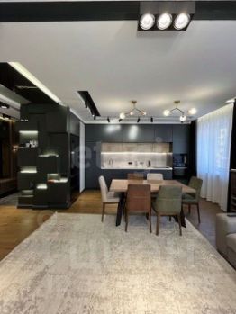 Итальянский паркет из массива лиственницы, бесшовные натяжные потолки с точечной подсветкой, центральное кондиционирование и предустановленная система умного дома. Кухня оборудована техникой Bosch, ванные комнаты — санфаянсом Laufen и скрытой инсталляцией. Мебель остаётся новому владельцу — гардеробные, кровати и диваны изготовлены на заказ из натуральных материалов.