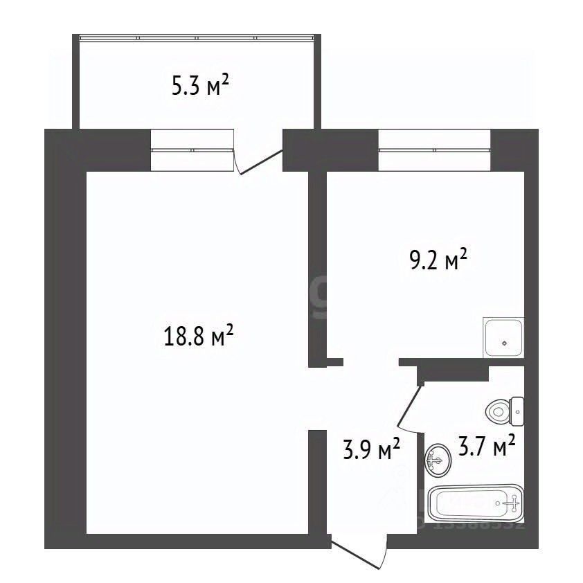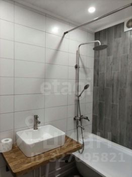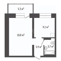 Kухня 9.2 м², оснащена всем необходимым для комфортного приготовления пищи. Совмещенный санузел выполнен в стильных серых тонах, оборудован современной сантехникой и душевой кабиной.