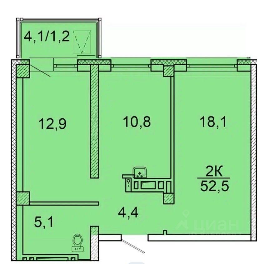 Общая площадь52,1 м²