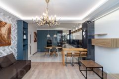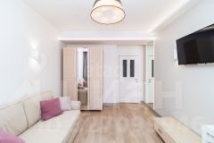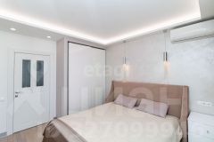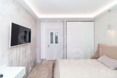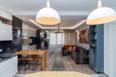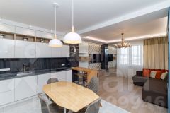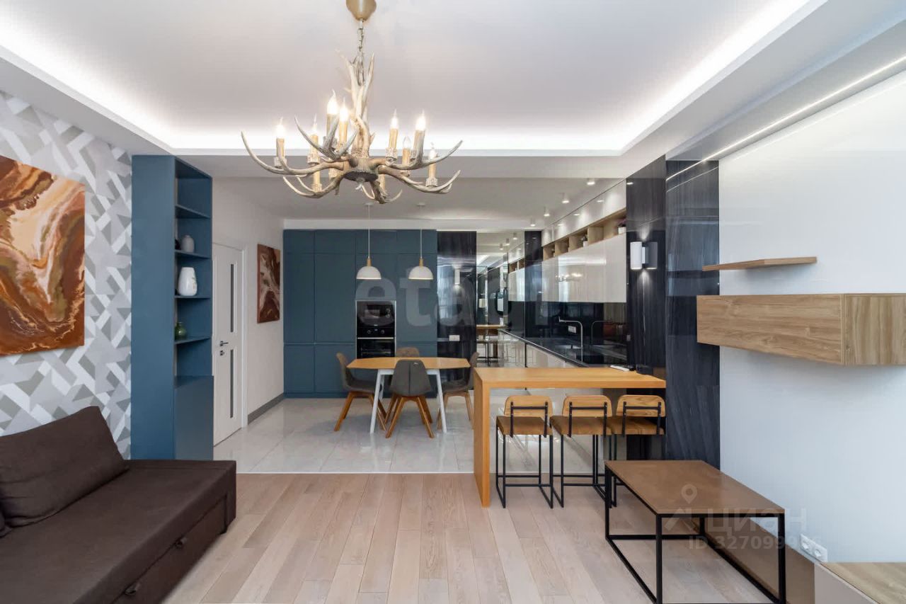 Просторная кухня-гостиная 22,2 кв. м с современной техникой (духовая печь, посудомоечная машина, холодильник), две изолированные спальни, отдельный санузел и большой балкон с панорамным видом на Енисей. Высота этажа обеспечивает обилие естественного света и открытые перспективы. В квартире выполнен качественный дизайнерский ремонт с авторской мебелью и продуманными деталями, включая элементы декора. Дом оснащен пассажирским и грузовым лифтами, мусоропроводом и пандусом.