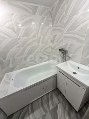 Санузел раздельного типа, где произведена полная облицовка стен и пола кафельной плиткой с установкой новой сантехники, что гарантирует долговечность и отсутствие затрат на ближайшие годы.