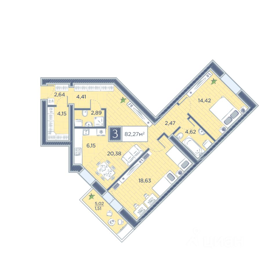 Продаётся 3-комнатная квартира в сданном доме (Петра Подзолкова, 10 (Дом 6.2)), срок сдачи: I-кв. 2024, общей площадью 82.27 кв.м., на 4 этаже. Внимание к деталям - один из главных принципов возведения микрорайона "Преображенский". Отдельные нюансы и их совокупность создают "умное" пространство и принципиально новый для города стиль жизни. В его основе - актуальная сегодня концепция смарт-сити. Однако "умный город" в прочтении "Монолитхолдинга" - это только и не столько про техническое оснащение района, оно в "Преображенском", безусловно, будет присутствовать. В первую очередь "смарт" - это пространство, позволяющее человеку самореализоваться в городской среде и сделать это по максимуму. "Для нас "умный город" - это новый образ жизни. Это среда, где все - от планировки района до выбора систем вентиляции - нацелено на удобство жителей. Ставим перед собой и сверхзадачу - предвосхитить потребности. "Преображенский" был спроектирован при активном участии известного японского архитектурного бюро Nikken Sekkei. Основная застройка на уровне 6-8-этажных домов, закрытые дворы и подземный паркинг, площадки для занятий спортом и отдыха, озеленение, широкий пешеходный проспект как "сердце" района. Однако японцы привнесли в "Преображенский" не только архитектурный подход мирового уровня. Главное - это особая философия проекта, в центре которой человек и его семья. Принцип "все для людей": максимальная продуманность, безопасность, удобство, внимание к деталям - именно из них и складывается жизнь. К вопросу безопасности в микрорайоне "Преображенский" подходим комплексно. В основе - принцип замкнутого контура дворов и запрет на парковку в них. На практике это означает то, о чем сегодня многие красноярцы только мечтают - можно отпустить ребенка во двор и не беспокоиться за его жизнь. Для размещения автомобилей в каждом доме "Преображенского" будет оборудован подземный паркинг. Для безопасности автомобилей гостей "Преображенского" на въезде в микрорайон будет возведен большой гостевой паркинг, оборудованный системой диспетчеризации. Среди других нюансов, формирующих безопасную среду - система оповещения о чрезвычайных ситуациях и информационные и тревожные панели, расположенные на территории микрорайона. На всех входах в "Преображенский" установят видеодомофоны. Системы видеонаблюдения будут расположены на улицах, внутри дворов и подъездов, а доступ к видеозаписям жители смогут получить on-line через личный кабинет.