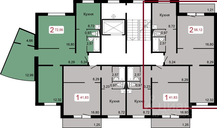 56 м²