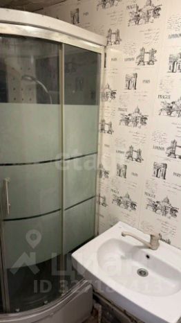 Санузел в комнате: душевая кабина, раковина, унитаз.