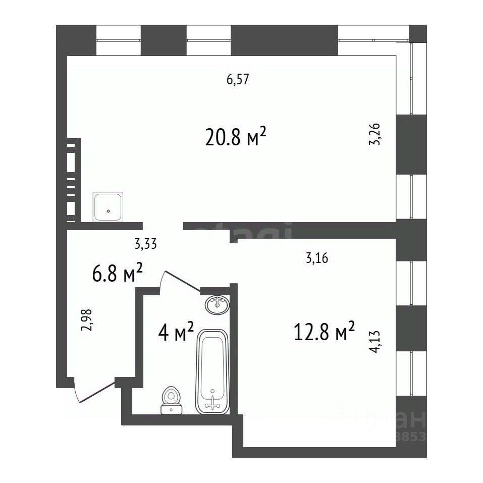 Вашему вниманию полноценная двухкомнатная квартира.