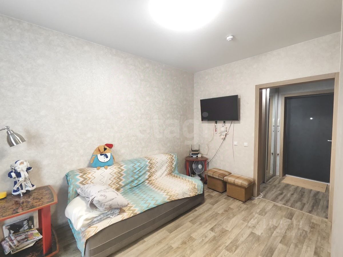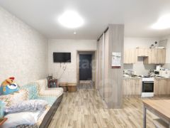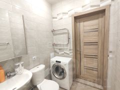 Планировка застройщиком изначально продумана до мелочей. При входе встречает встроенная гардеробная зона, отдельный отсек для верхней одежды, и зона для хранения. Шикарной площади ванная комната полностью выполнена в кафеле, вложений не требует. Сама комната зонирована встроенным шкафом, отдельная зона кухни с выходом на лоджию. Студия с двумя окнами и видом на рассвет и во двор.