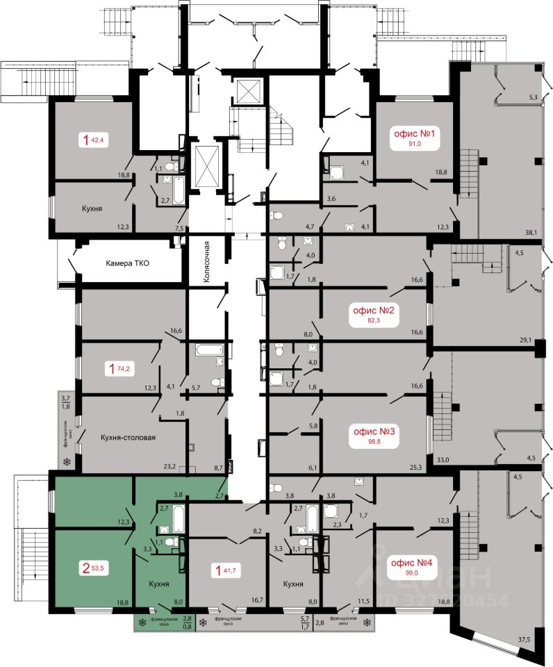 Продаётся 2-комнатная квартира в строящемся доме (Дом 1), срок сдачи: IV-кв. 2026, общей площадью 53.5 кв.м., на 4 этаже.