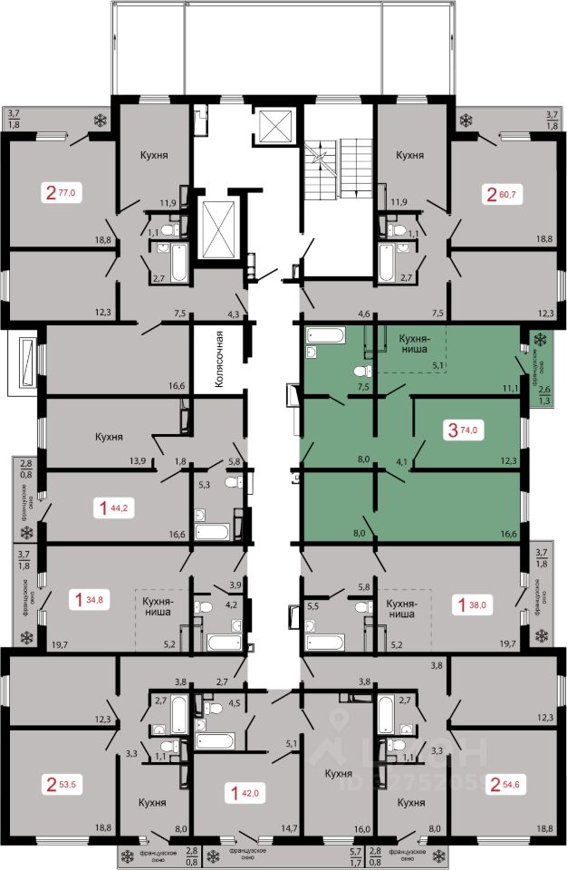 разнообразные классические и европланировки квартир: 1-комнатные площадью от 40-76 м2, 2-комнатные - 46-63 м2, 3-комнатные - 75-76 м2,