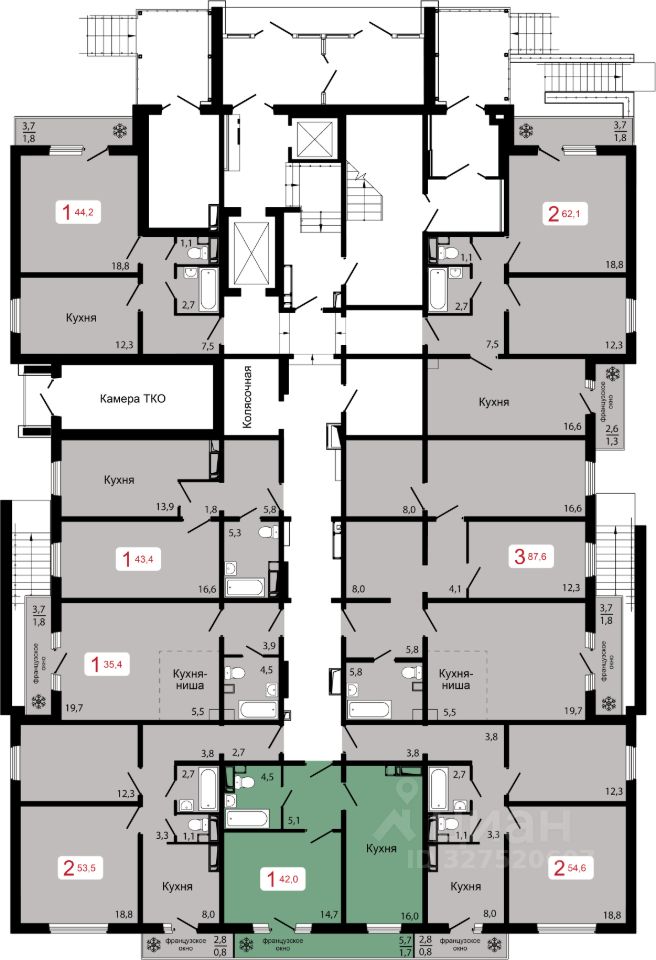 Продаётся 1-комнатная квартира в строящемся доме (Дом 3), срок сдачи: II-кв. 2027, общей площадью 42 кв.м., на 10 этаже.