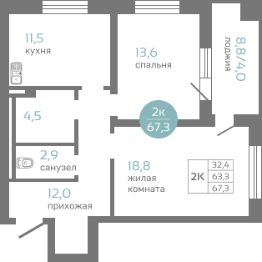 67,3 м²
