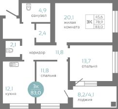 Продаётся 3-комнатная квартира в строящемся доме (Маэстро), срок сдачи: IV-кв. 2026, общей площадью 83 кв.м., на 3 этаже. Новый жилой комплекс "Маэстро" от группы компаний "СТМ" расположен по адресу: г. Красноярск, по ул. Авиаторов.